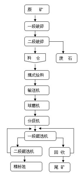 為了方便大家理解,先給大家看下使用的設(shè)備,以及每個(gè)階段使用的設(shè)備,也就是磁鐵礦選礦流程圖,圖例如下:
